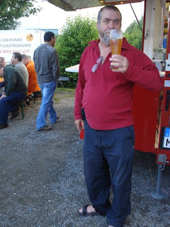 The campsite had a couple of amenities - a small food bar and, of course, a beer bar. Soon we had extended our UK contact list beyond Norman GI4ZSP to Dave GW4ZAR and Steve MW0ZZK as we shared a beer or two together. In fact, Dave and Steve became good friends and we bumped into them several times more over lunch food sessions and evening bar excursions. Another group of regulars at the bar was a Dutch DX group whose excellent English meant we become an international drinking group. The beer was good too, a weißen and a märzen to choose from, at €4 per ½ litre. On Saturday evening we spent a long evening in the company of these good friends and Sunday morning we were both not at our best. It was then that I discovered the märzen we had been drinking was a hefty 5.6% by volume!