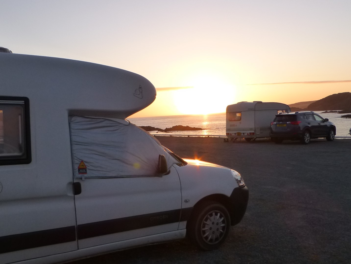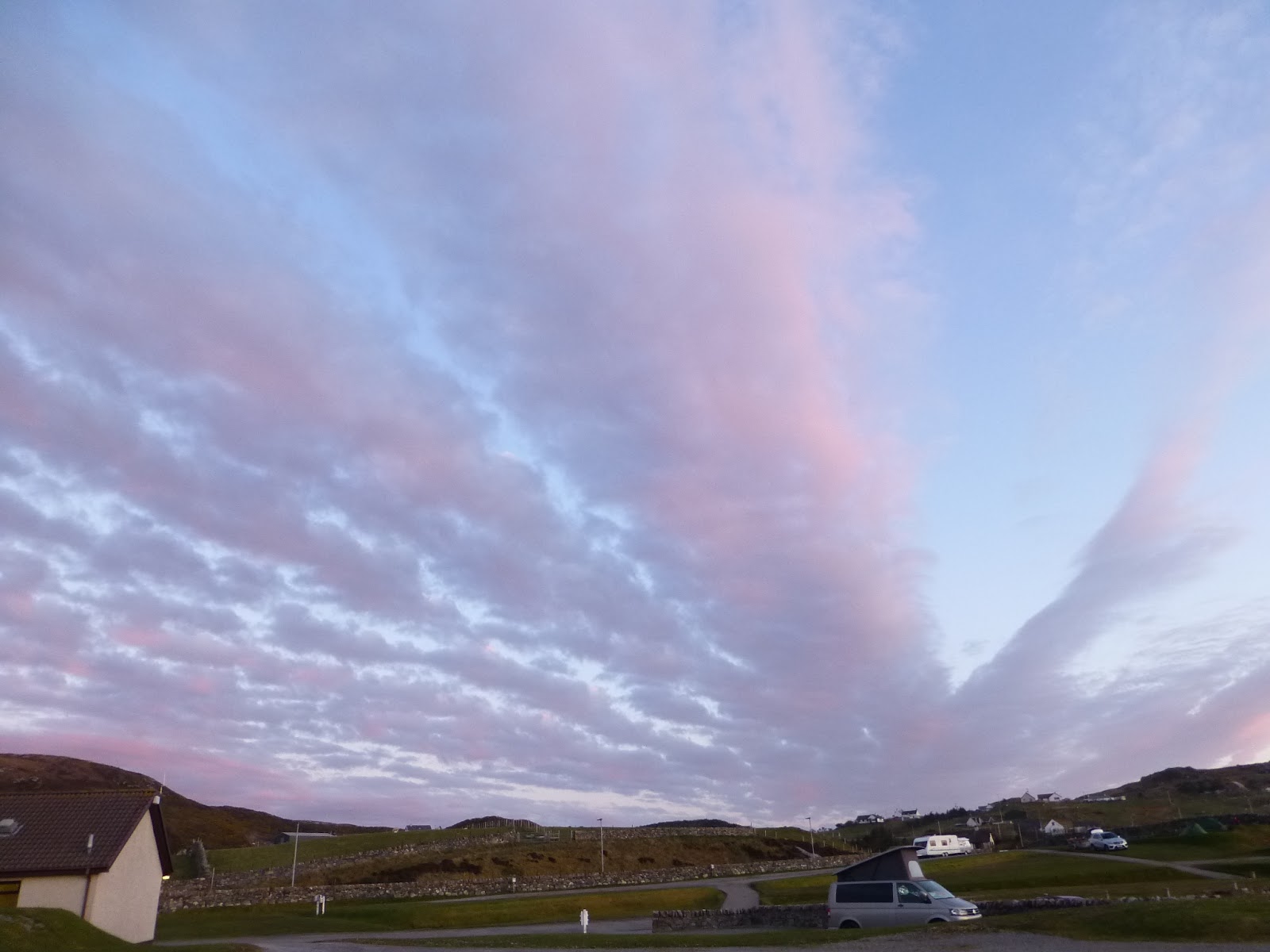 It's a tiring drive, only just under 4 hours but a lot of heavy concentration. The campsite is a welcome relief and what a fantastic campsite, overlooking a bay with Red Throated Divers doing their diving thing. As we drove this afternoon the day turned into a really beautiful sunny day and so we were rewarded with quite some sunset.