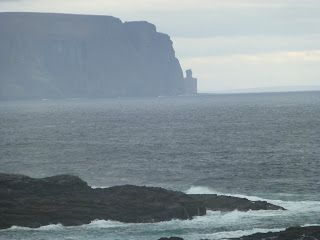 Oh well not quite, but bear with me dear reader.It's raining again, not heavy and not enough to stop us going out. Or it wouldn't be on its own, but in combination with the hoolie blowing wind it is going to be pretty unpleasant out there. No more housekeeping to do, so let's go for a drive.First stop the Orkney Brewery. We're out of beer in the van so where better to refill stocks than the brewery itself. Answer - Tescos who sell most of their beer cheaper than the brewery itself (and also sell the Orkney Wine cheaper than I paid at the winery shop on Monday). Still the brewery do have a few bottles we've not seen before including heavily discounted end of line Christmas ale. We are now restocked! A few miles up the road is the new Swannay brewery, whose beer we've drank draught in town and have seen an interesting bottle range in one of Kirkwall's delicatessens. This time the brewery is bound to be cheaper. Nope, it doesn't have a shop!Oh well, we were passing anyway on our way to the Brough of Birsay, which is a tiny island walkable by causeway at low tide. Some Viking archaeology and probably the best place to find puffin. We get there, the tides out, but the rain is steady and the wind relentless. Some other time, maybe.So we decide on trying to find the RSPB hide in the moorland where there is a chance of spotting hen harriers. It's remote, very remote, down a single track lane, without passing places, through a muddy farmyard (mind the cow blocking the gateway) and on to a small car park. Then a half mile walk across soggy moorland to a very nice, modern hide. 15 minutes elapse and nothing other than Oystercatcher, Curlew, Greylag Geese, and LBJs (little brown jobbies, too fast and flitty to be identified). Then there he is, distant and needing binoculars but the unmistakable white and black wingtips of a male hen harrier. Our first ever sighting. O frabjous day! Callooh! Callay!” He comes lower down the hilltop and closer, a good few minutes display, then soars off into the distance. Wonderful. But it gets better, just a few minutes later we catch a glimpse of something large coming down close to the hill line and then landing. After a few seconds of trying to identify the landing site with the binoculars, I spot her, the larger, brown female, just standing by a clump of peat, some goodly distance away. Here's the male again, he comes down and practically buzzes the female. She ignores him so off he disappears, up and over the hill. Now she rises, slowly, majestically taking the air, soaring on that strong breeze, letting it carry her up and along the hill. She twists our way, teasing, promising to come nearer and then back into the wind and in a couple of wingbeats makes the hill top and disappears behind it. That's all folks!Back to the car park, open the door, and what's that suddenly appeared directly overhead, another male hen harrier. Fantastic. Back up the lane, avoid some Dutch birdwatchers who we manage to squeeze past in the width of the farmyard. Back to the main road, still single track but with passing places this time. A quarter mile down and there's another female hen harrier just up above the road. Hmm I said "Fantastic" when we spotted the 2nd male, I'm running out of superlatives. So I say to Liz, what we need now is a Short-eared owl to round this off nicely. No more than 20 second pass and Liz exclaims "there! Sitting on a rock". Now the gods of ornithology were smiling on us this afternoon, I was driving directly past a passing place. Emergency stop, binoculars out and there's the owl 40m away, sat placidly on a rock outcrop. We stare at each other for 4 or 5 seconds and it flaps gently a few metres further away behind a protective screen of peat and heather. My closest ever encounter, he is incredibly detailed with binoculars at that short distance. It doesn't get better than this!Oh yes it does! Another quarter mile on and a small brook cascades into the roadside verge. A couple of Oystercatcher and LBJs but then a flash of chestnut and grey. A Kestrel, no it's a bit small and that twisty flight, it must be a Merlin! Habitat's right and they are more common here than Kestrel I believe. What a great hour for birds and 3 good 'uns from the car.On to Stromness where parking was a nightmare so we gave it a miss and went instead to Yesnaby cliffs. A nice walk along the clifftop to a rocky head that in a few millennia will be a tiny island. Grass topped cliffs, perfect for puffin, and today's going to be the day. Sadly not, we'd overreached into the basket of ornithological bounteousness - lots of burrows that screamed "puffin" but the birds themselves were absent. Still a beautiful walk and a nice view of the Old Man Of Hoy as the backdrop.