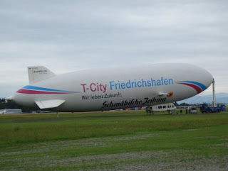 An early wake up call - just what is that hellish loud drone outside the van so early in the morning? It's a Zeppelin! Having left our home in Eastleigh where the Spitfire was built and tested, we find ourselves in the home of the Zeppelin; and what's more there's one just above our heads. And I do mean just above! Resisting the temptation to shout "Achtung Spitfire!" we dress quickly and go out to watch it land. Later in the day we wandered over to the terminal to discover at €200 each a ride was prohibitive, and anyway would I trust myself being alone with a gas bag? Now why has Liz just kicked me!